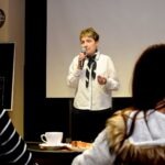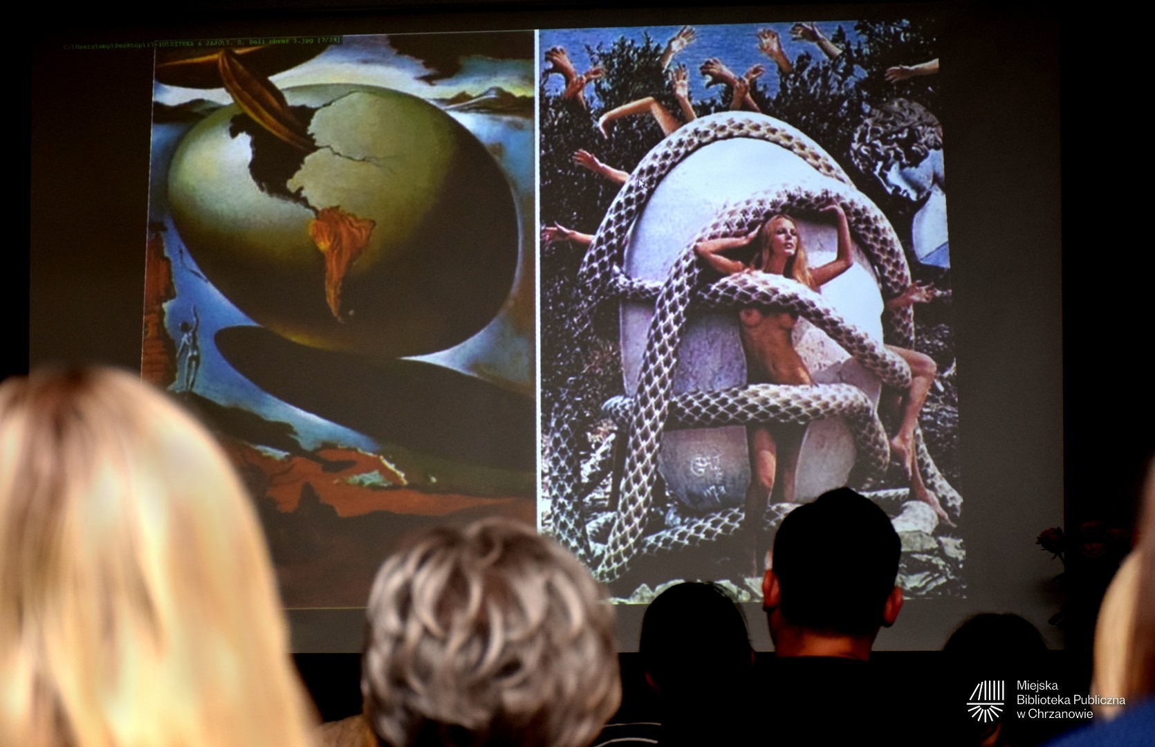 Artystka zaprezentowała prezentację multimedialną. Omawiała koncepcję jajka jako uniwersalnego symbolu – klucza do poznania Boga, siebie, życia, prawdy i drogi. W trakcie slajdów i projekcji artystka nawiązywała do tradycji artystycznych, wskazując na inspiracje czerpane z dzieł wielkich mistrzów, którzy również uczynili z jajka narzędzie ekspresji metafizycznej i surrealistycznej. Podkreśliła, jak jajko w jej twórczości ewoluuje od harmonijnej formy do rozbicia i przemiany, odwołując się do Salvadora Dali – ikony surrealizmu, który obsesyjnie wplatał jajko w swoje prace jako symbol nadziei, miłości i narodzin nowego życia. Nie zabrakło też odniesień do innych twórców.