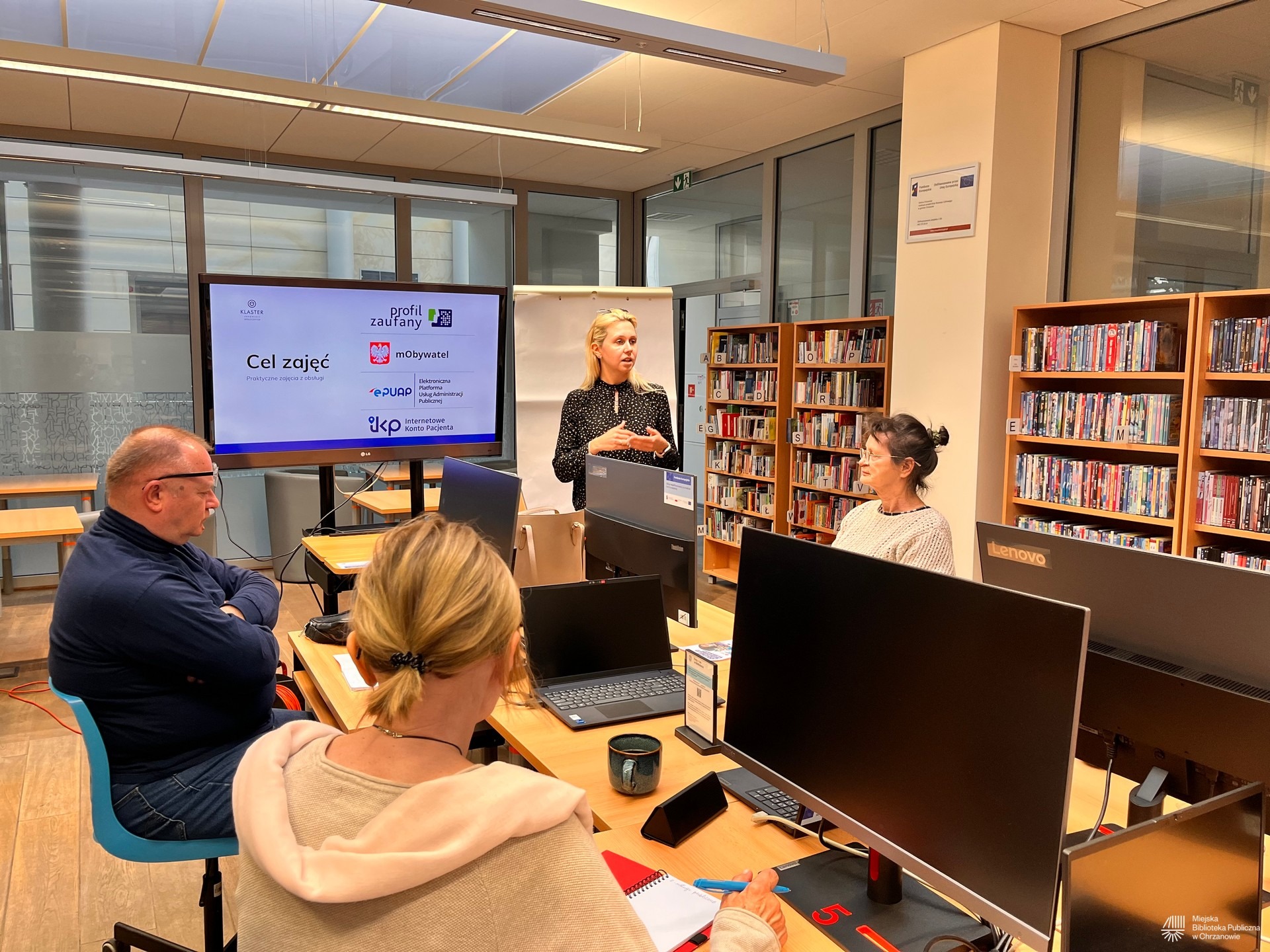 Celem zajęć, które odbyły się 9 i 10 marca 2026 w Miejskiej Bibliotece Publicznej w Chrzanowie było przekazanie uczestnikom podstawowych informacji dot. usług: Profil Zaufany, mObywatel, ePUAP, Internetowe Konto Pacjenta: